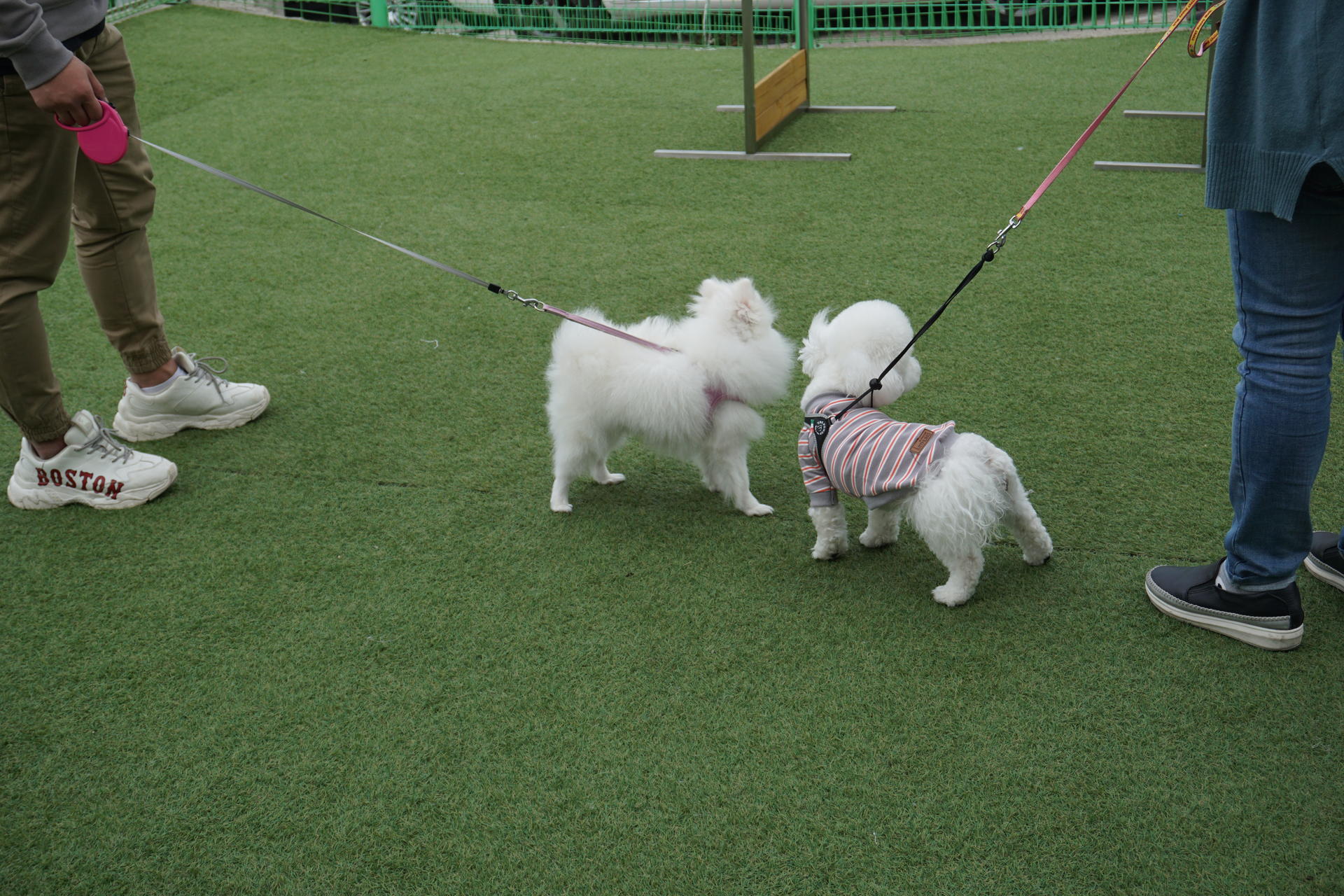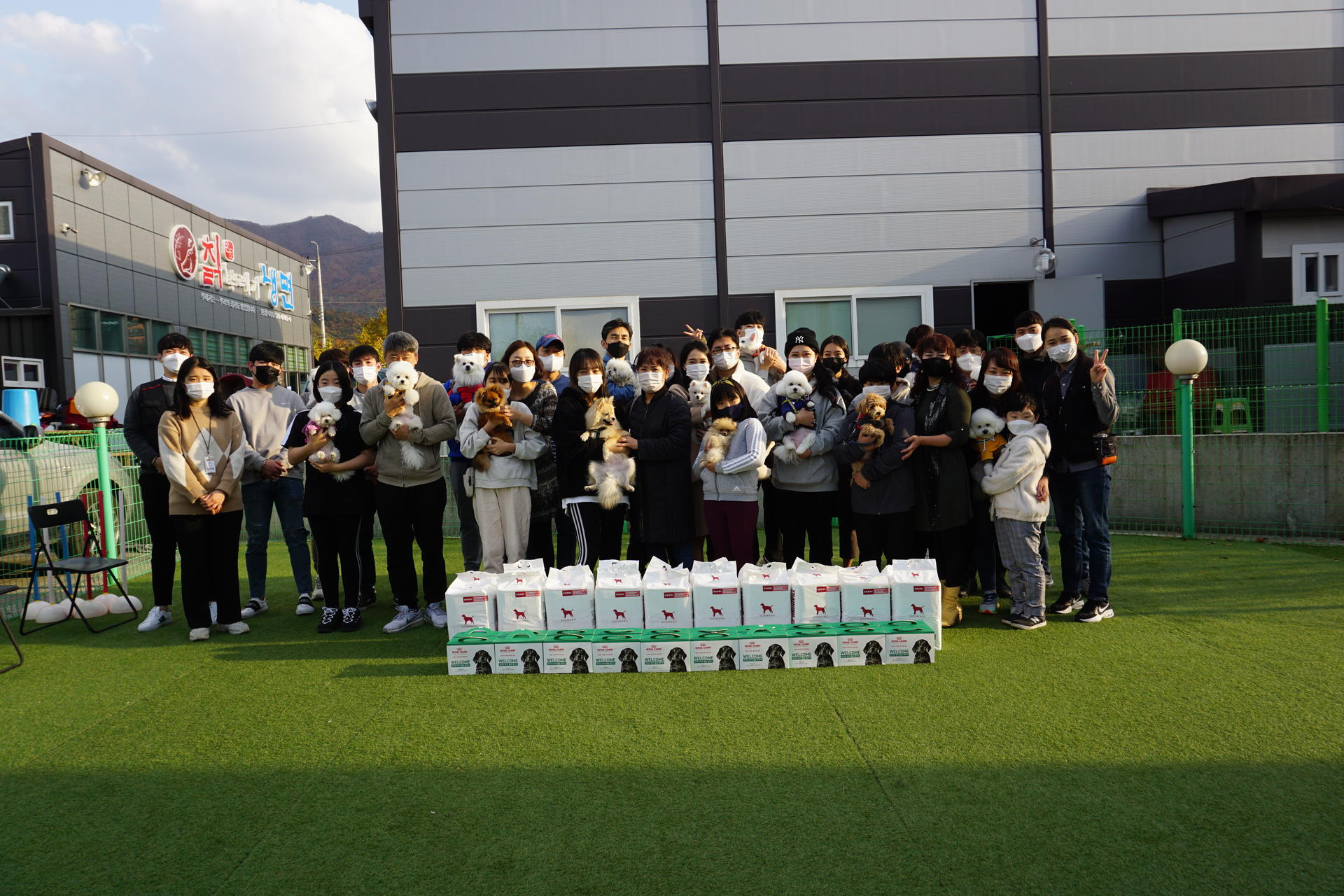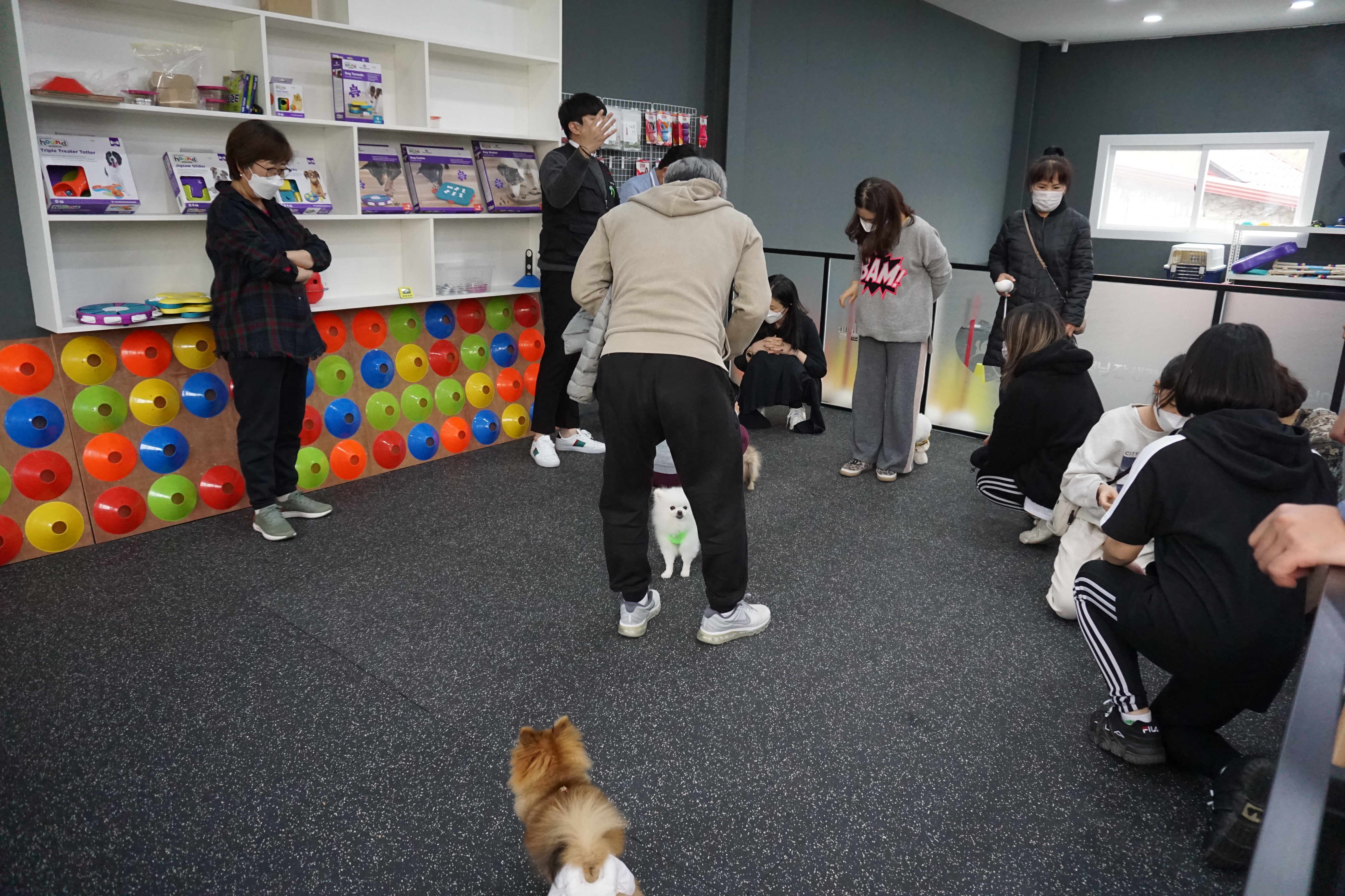 다양한 견종들이 모인 넓은 공간에서 화기애애한 분위기 속에서