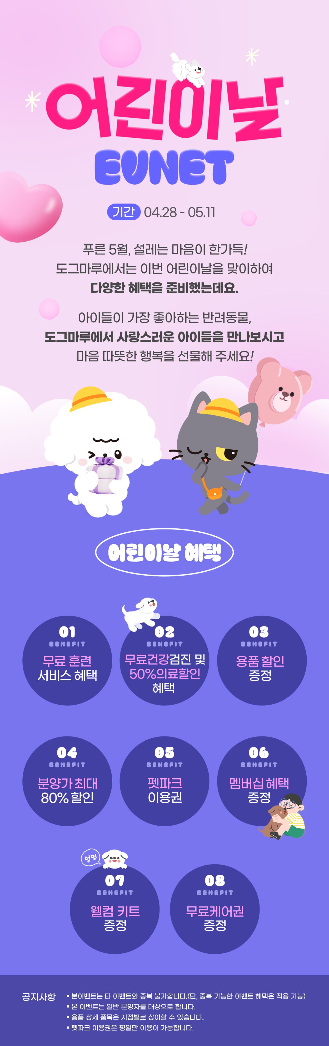 ✔ 혜택 : 최대 80% 분양가 할인 / 웰컴키트 증정 / 기초 건강검진 / 멤버십 혜택 / 무료케어권 증정 / 펫파크 이용권 / 용품할인권 / 훈련 체험권