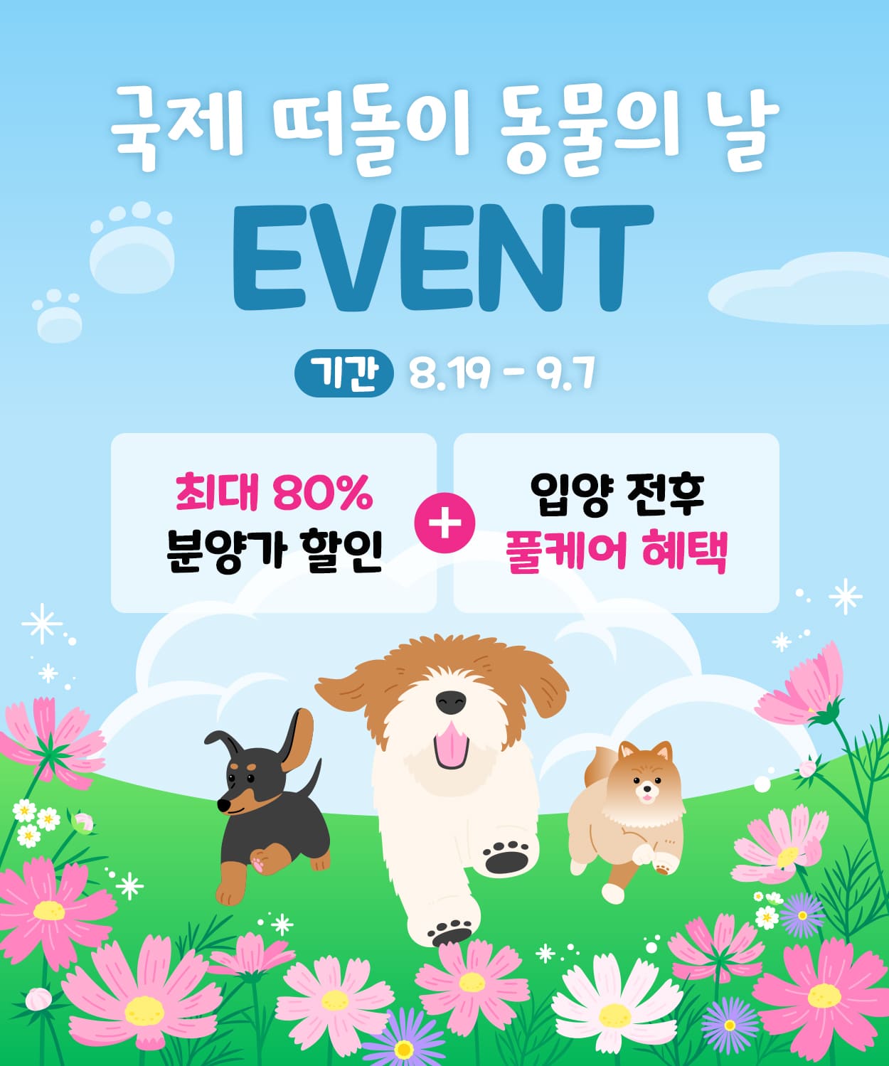 ✔️ 혜택 : 최소 30%~ 최대 80% 분양가 할인 / 홈스쿨 체험권 / 기초 건강검진 / 멤버십 무료가입 / 케어권 증정