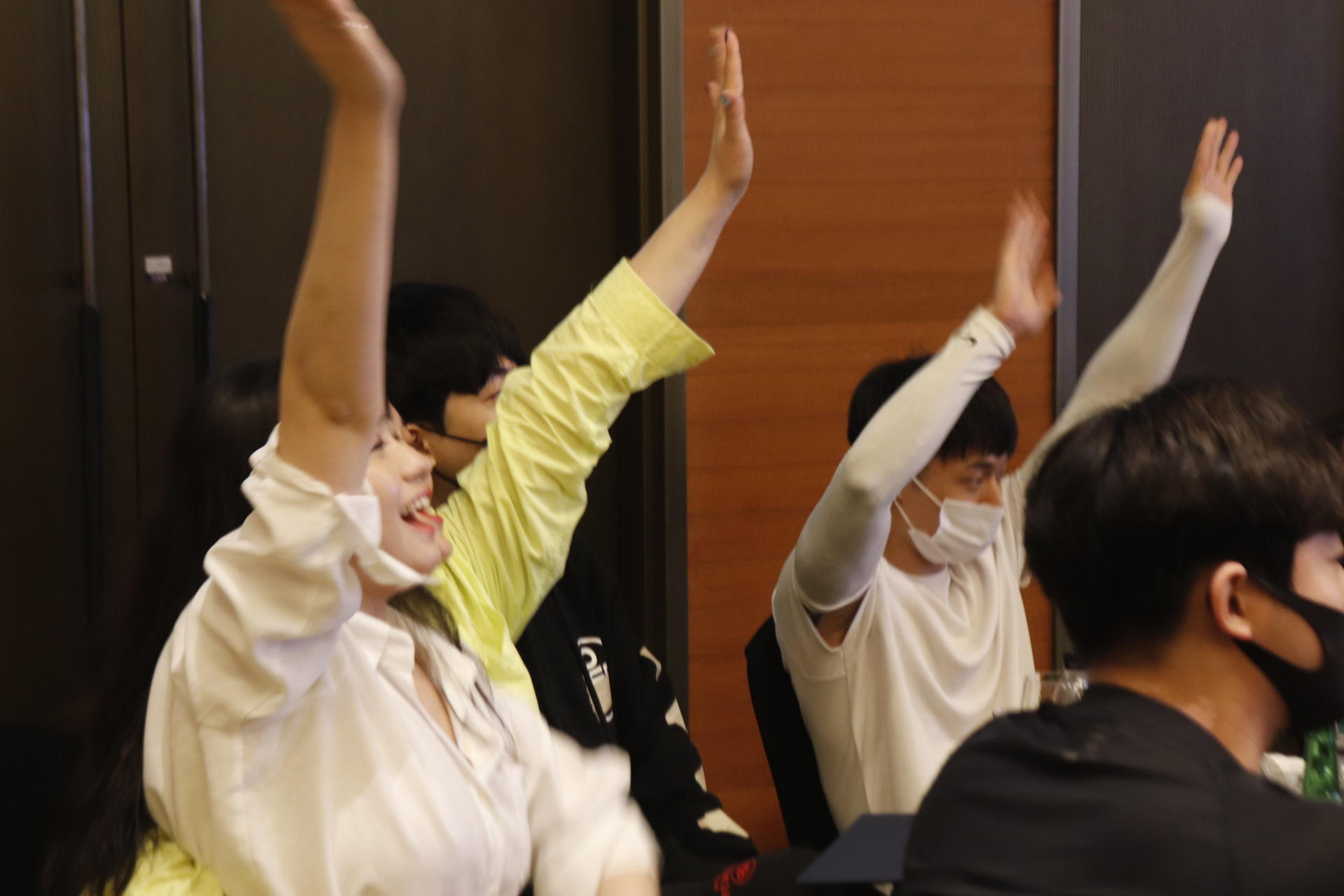 여기저기서 쏟아지는 웃음소리와 번쩍 번쩍 들리는 두 손!