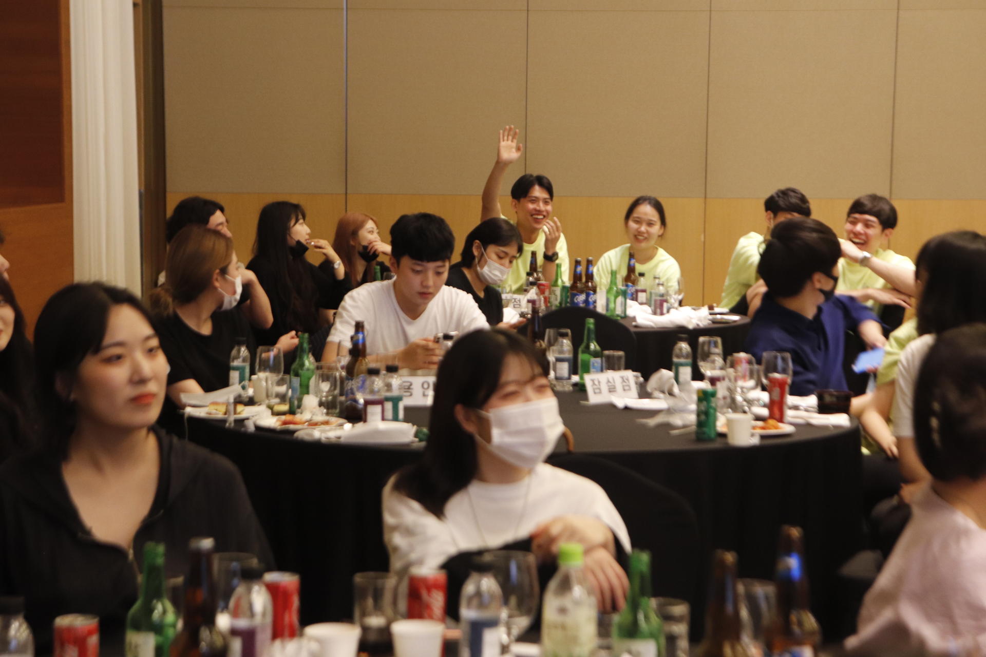 여기저기서 쏟아지는 웃음소리와 번쩍 번쩍 들리는 두 손!